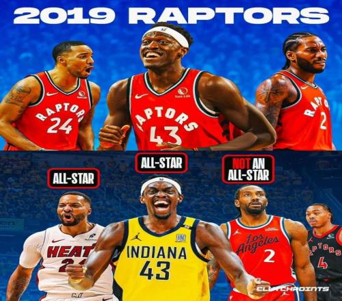 更有意思的是,今年的全明星名单里,还藏着一段青春回忆 ——2019 年猛龙夺冠阵容中,如今有两名球员入选了全明星正赛,除了鲍威尔,还有西亚卡姆。当年那支一路逆袭、击败勇士夺冠的猛龙,如今双核再度聚首全明星,本该是皆大欢喜的时刻,可当年的夺冠核心伦纳德,却意外落选了,这样的反差,难免让人唏嘘。