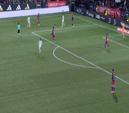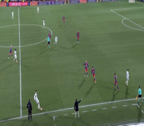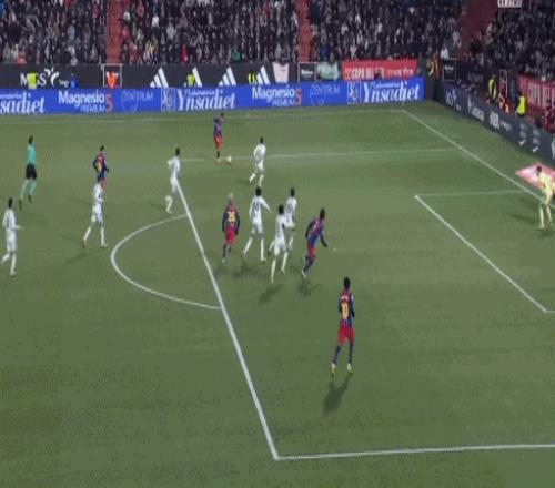 第67分钟,费尔明妙传,奥尔莫插上打门被没收