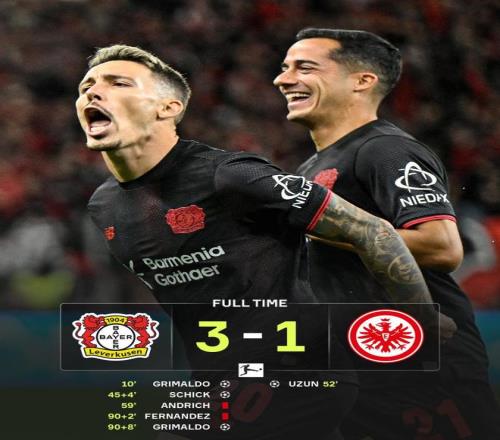德国杯四分之一决赛,勒沃库森3-1完胜阵圣保利。一边是德甲第6,一边是第17,实力差距悬殊。泰里耶、希克、霍夫曼各进一球,药厂成为首支晋级德国杯四强的球队。